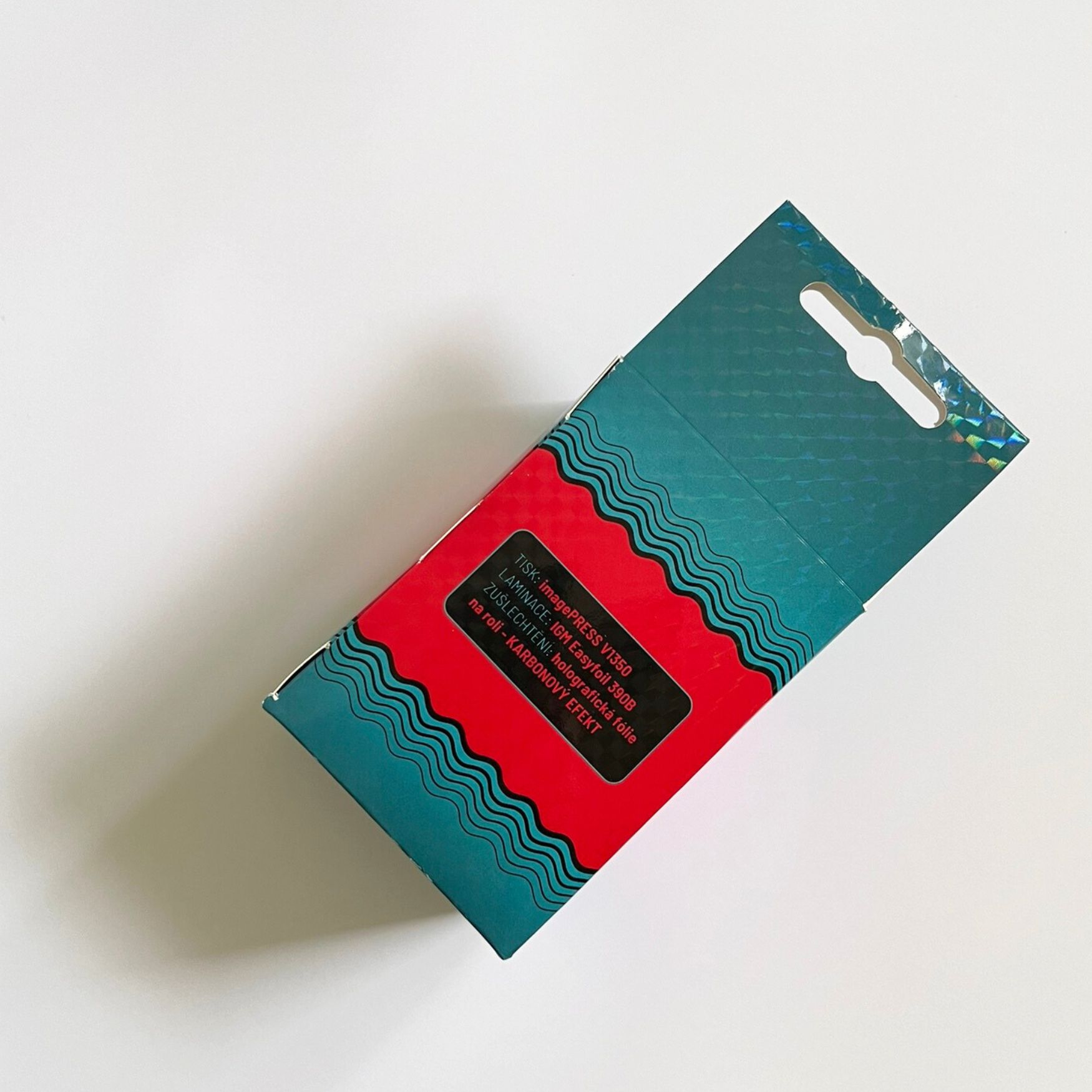 Krabička Smybionotes – Tisk na kartoin GC1 330g SRA3, následně zušlechtění karbonovou fólií, výsek a lepení